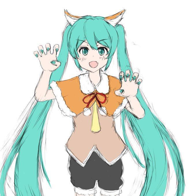 ハッピーハロウィンです🎃 去年は魔女(っぽいもの)をかいたので、今年は「けもみみ」にしました #初音ミク