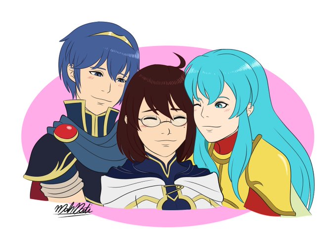 Commission for the amazing @majibomber, who asked for Marth, Maji and Eirika being cute! Thank you for commissioning me!