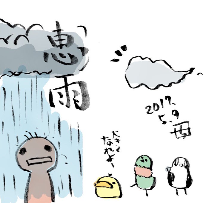 【 #朝画 】本日、恵みの雨が。 #イラスト #毎日 #まほぴよ #だめ人間 #のほほん #まったり #作品集出版したい #らくがき #illustration #draw #paint #mahopiyo #ひよこ #岡崎市 #雨