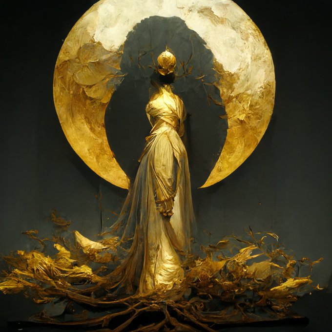 月を崇拝する黄金の女神