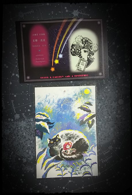さて、点滴堂にて、遊星商會さまの星空硝子標本「南の魚座」丹頂のキーホルダーとフランスガムさまの月明かりも涼しげなポストカードをお迎え。遠く行けない昨今、涼しげな空気が嬉しい。個人的にこの丹頂模様の和金が好きなので思いもひとしおです。#点滴堂