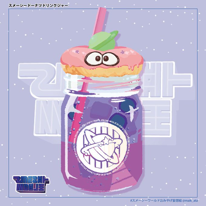 缶バッジ入稿した!スメーシーワールドおみやげ妄想絵でドリンクの上に乗っていたドーナツを缶バッジにしました!穴のむこうは宇宙!3つセットで9/24のスプケにて頒布します~よろしくおねがいします!