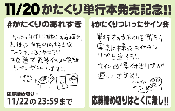 【拡散希望】11/20にかたくり単行本が発売されます!書店特典や企画もやっていますのでぜひご参加くださいね~!