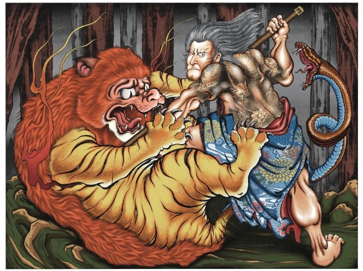 Representation of the warrior we all carry within us, the one who faces the worst adversities throwing himself into battle, as in this scene, against a Nue"