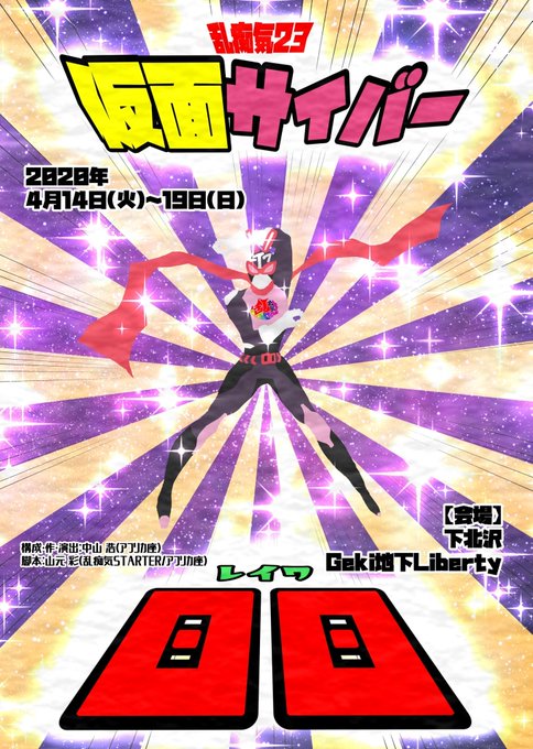 乱痴気23『仮面サイバー00(レイワ)』4/14~19@Geki地下Libertyこの輝くフライヤー!!もうとんでもなく愉快と熱さが爆発した舞台になることが約束されたフライヤーです。4月は仮面サイバー大暴れします。どうか宜しくお願い致します!