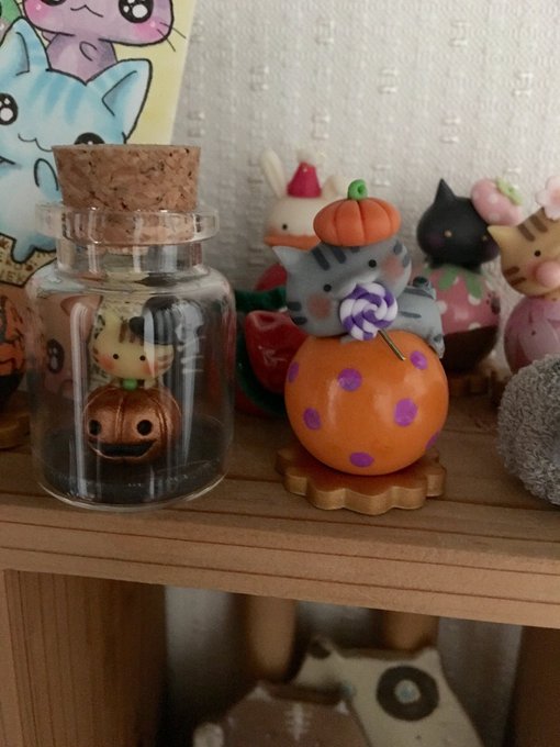 昨日、アート展に遊びに行きました。ココロさんの所でねこたまさんと瓶詰めニャンコを購入して‥玄関の猫達がぎゅうぎゅうになりました。 #ねこ #てづバ