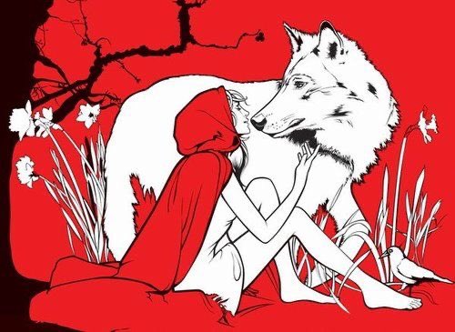 狼と赤ずきんのイラストが好き 何でかはわからないけど。 1枚目はきなこちゃんと私。