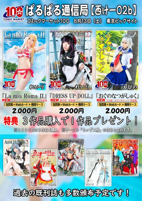 2000年からコスプレロム活動しています。サークル名「ぱるぱる通信局」 フォロー&解除はご自由にどうぞ~ ^o^ コスプレ写真集の通販もやってます!!サークルサブ垢@palpalmaira BOOTH pal.booth.pm