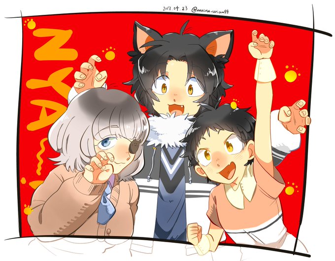 <らんちき猫トリオ> まいる宅の猫トリオ。左からるか、がんも、まめ。
