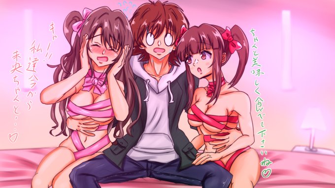 本田未央が誕生日プレゼント(智絵里と卯月)を食べる直前の絵を描きました。