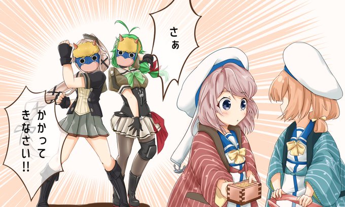 #艦これ 丁型の二人と節分ノリノリの保護者二人