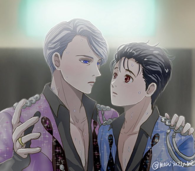 いつも本当にありがとうございます。少し前にフォロワー様がキリの良い数超えたのでお礼に「ペア演技後急にコーチモードに切り替わるヴィクトルと、こんな時でも小言言うんだと感心するもののその内容はほぼ聞いてない勇利くん」を描きました。ご笑納下さい。