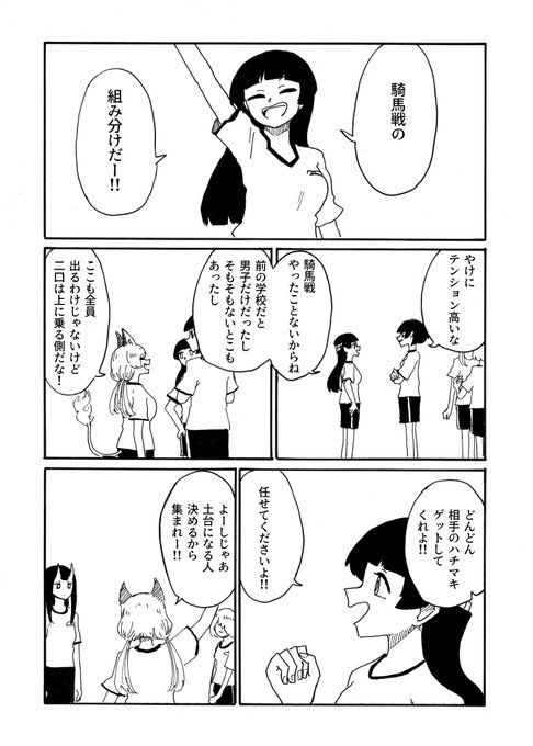 転校生メデューサと二口女 その58 「念願の騎馬戦」 #創作漫画