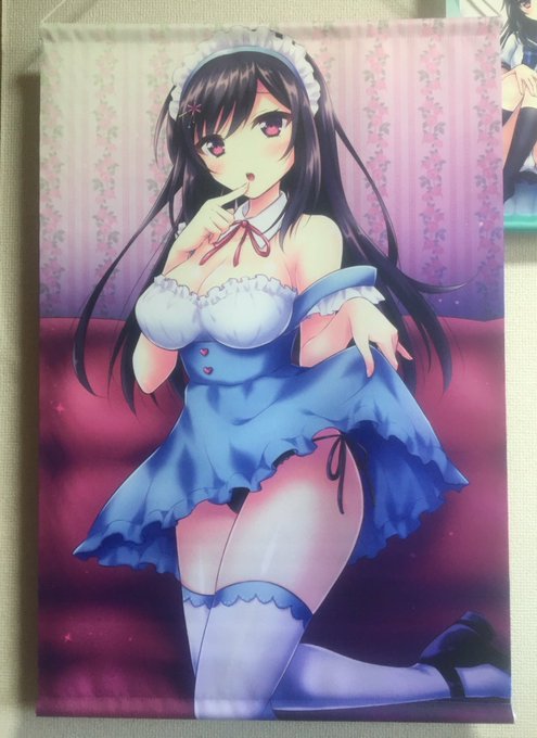 【冬コミグッズその①】おさそいメイドさんのB2タペストリー(Wスエード)です🎀人生初タペストリーでドキドキでしたが印刷めちゃくちゃ綺麗で感動しました…! ローアングルからも是非楽しんでください🕺✨