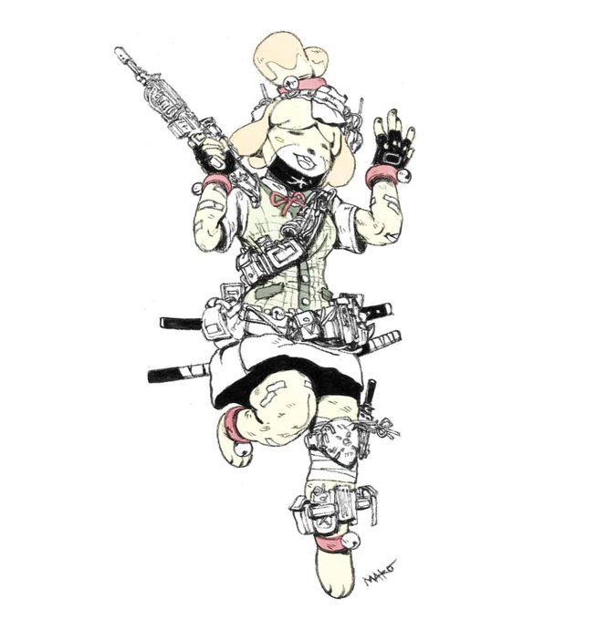 #art #AnimalCrossingNewHorizons #isabelle #animalcrossing #fanart #guns #brushpen