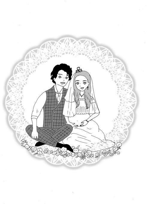 小学生の頃、転校した時からずっとずっと仲のいい親友のエイコ(仮名)から似顔絵描いて、と言われて描いた。旦那様はなんと12歳歳下✨漫画に描いて、と言ってもらってるのでいつかエイコの漫画描きたい。それにしてもウェディングドレス姿のエイコ綺麗すぎた😭✨おめでとう。