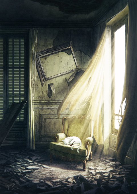 #RTで私を有名にしてください 便乗させてください! 猫がいる風景をよく描いている背景描きさんです。🐈️✨