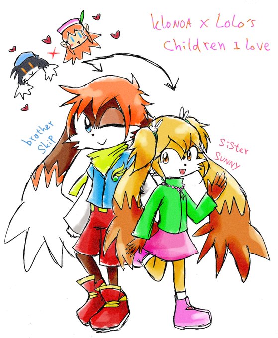 @Pasta_Ria42 @MacaHeroes sorry me, make draw love klonoa x lolo's children named skip boy and sunny girl! 😁😄