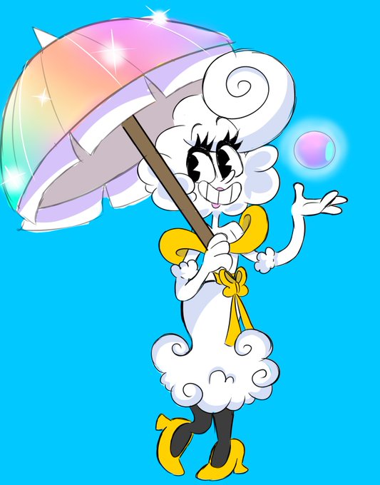 So uhhh I guess it's time I mention that I revamped my Cuphead OC Mae Merryweather (yeah even her last name was changed). She's still a weather witch, but now she's a cloud. Also I gave her a cloud cat since witches usually have cats