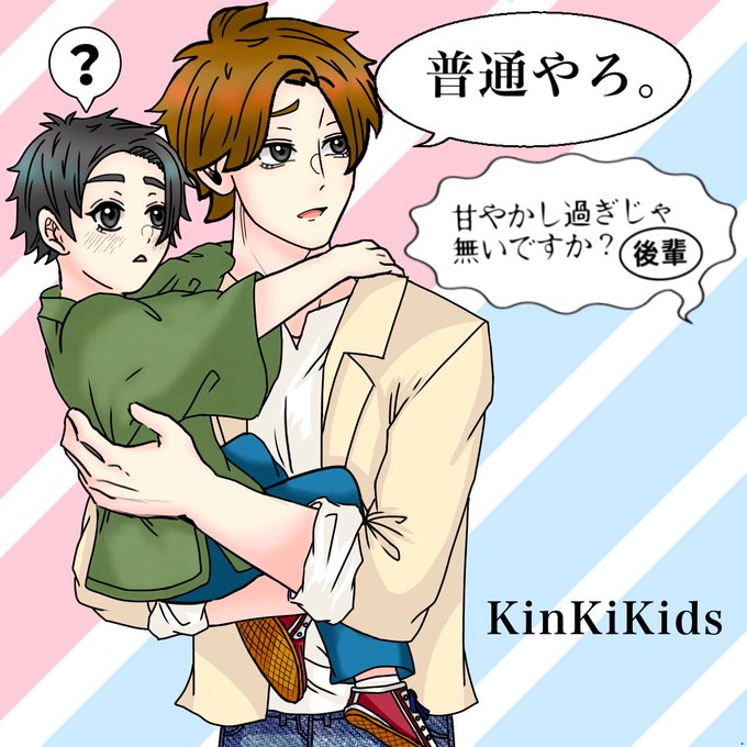 自分が思うKinKiKidsのイメージをイラストにしてみました。光一さんのワンコのカラーリングは「コウイチブチ」 を参考にしました。#KinKiKids #図書委員さんと繋がりたい