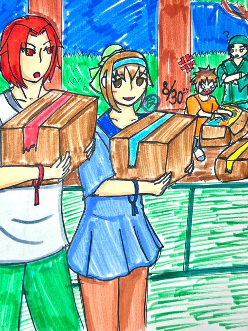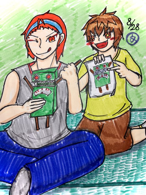なつやすみうちのこ27 思い出の記念をキミ達に。 「素敵ですね〜!ありがとうございます!」 「はぁー、本当器用だなお前」 「デカブツ!おい、デカブツ!次俺の奴な!!」 「大丈夫、今作ってますよ」 ※お道具他、作業描写の拙さは何卒ご容赦ください。このお道具を描いてみたかったんです。