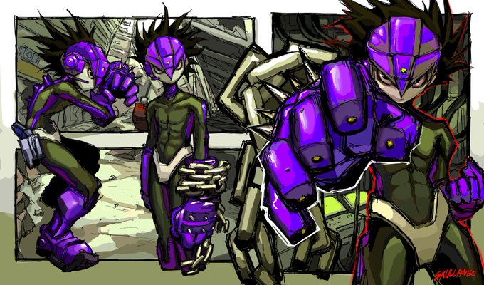 oc inspired by toru nakayama's work on megaman zero. he is pretty cool and purple #art #digitalart