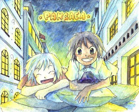 合作絵!COHKOとPON!キマとパンゲアから描かせて頂きました。贈り物それぞれ謎が残りそうですけど感覚で察して頂けると幸いです…///4枚目はCHOKO読んでたら描きたくなった双子です #であいもんアニメ化ありがとうッ