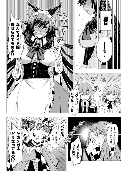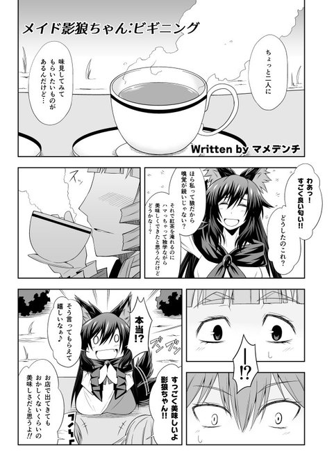 例大祭【T06b】人力発電所で頒布するメイド影狼ちゃん合同に掲載している影狼ちゃんがメイドの格好をするきっかけを描いた漫画のサンプルになります!合同自体は全60P700円となります。(詳しくは返信元の表紙および参加者一覧をどうぞ)