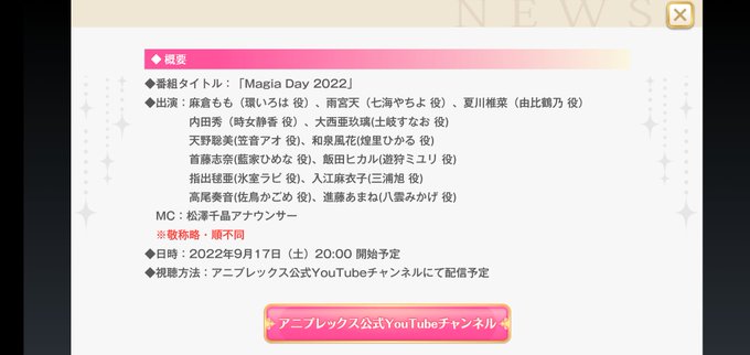 Magia Day 2022開催決定おめでとうございます🎉㊗️🎊出演者様の中に内田さんが…!😭🙏✨楽しみ!