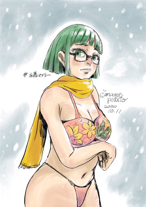 スク水が主流だとあとで気付いたのだった。描き直した。 #水着マフラー部