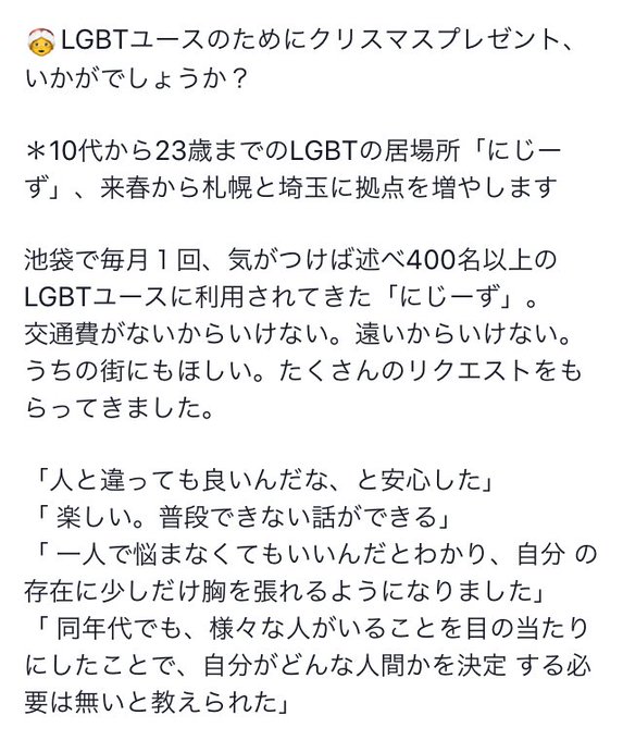🤶LGBTユースのためにクリスマスプレゼント、いかがでしょうか?