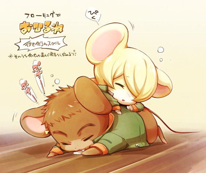 フローリングひんやりするのでお昼寝開始するしのやまちゅ💤 この後ミカちゅあたりから参加者が増え始めて、最終的にちゅの団子が出来上がります!!🐭🍡