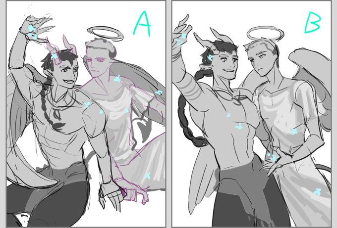 悩んでたラフ← 色ラフ&線画清書~これがこうなる→