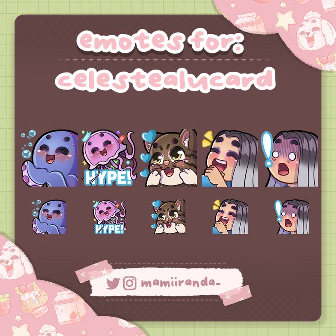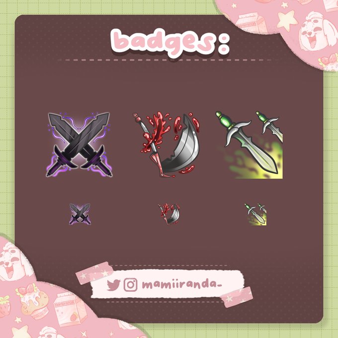 @mandybear36 hii miranda! i do emotes, badges, overlays, panels and more c: i'll leave my portfolio below, feel free to dm me anytime! thank you✨