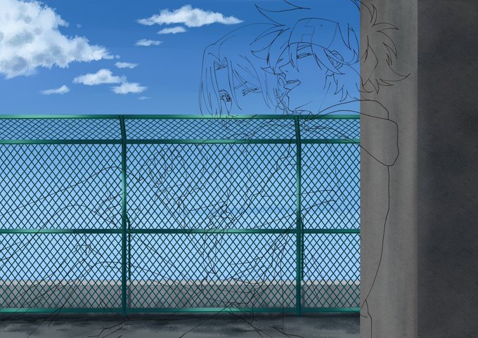 ザっと塗り。背景はぼかすからね…今回わりとちゃんと描いたんで。 #エスケーエイト #sk8