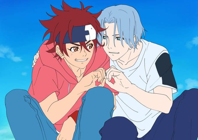 迷走したけど、イチャイチャ暦とランガ。ちなみに左右固定ではない人なのですみません… #エスケーエイトファンアート #エスケーエイト #sk_8