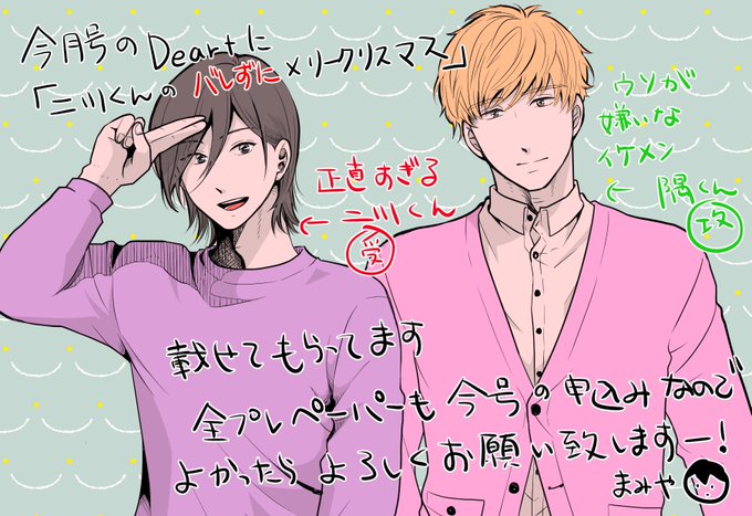 明日発売(!)のDear+に二川くんシリーズの読切を載せていただいてます。ひと月遅れのクリスマス話です🎄🎅🎁☃️先月描いたのキラキラさせてみました✨