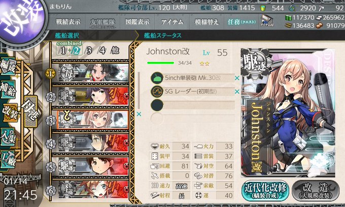 ジョンストンちゃんも改になった( ^ω^)