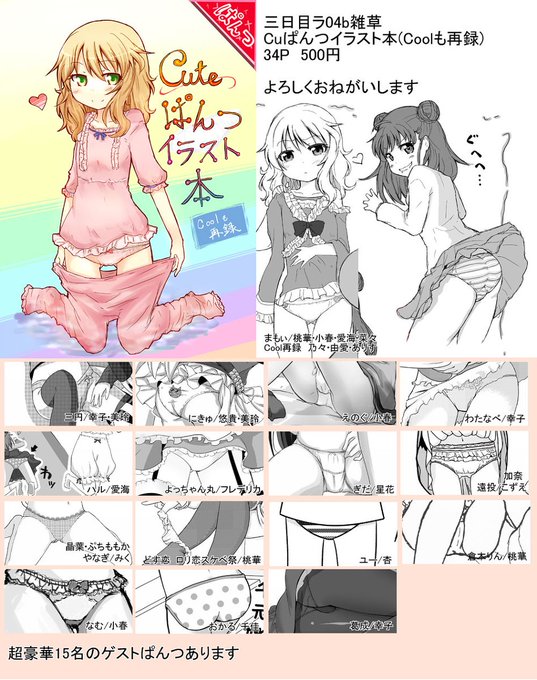 3日目て06b雑草、32P500円。たくさんのゲストが集まったパッションぱんつイラスト本とかいうの出ます。きみだけの最高のぱんつを探して欲しい。