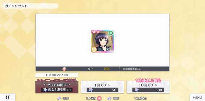 今日の無料10連、SSR来たけどNewじゃなかった。