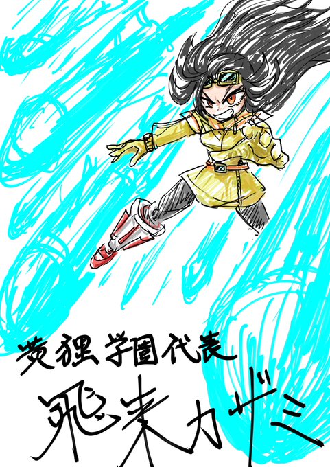 飛来カザミ ・学園格付け戦【ガクエンコンバット】がある世界 ・黄狸学園代表 ・戦闘と青空が好き #オリキャラ #ガクエンコンバット