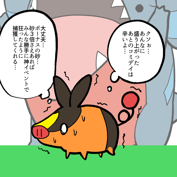 突然のコミデイ発表に震えるポカブ