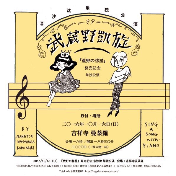 10.16吉祥寺曼荼羅で行なわれる、音沙汰 単独公演「武蔵野凱旋」ですがキャンセル分も含め全て完売いたしました。お買い上げ頂きました皆様、どうぞお楽しみに。この日からライブ盤「荒野の彗星」販売開始です。