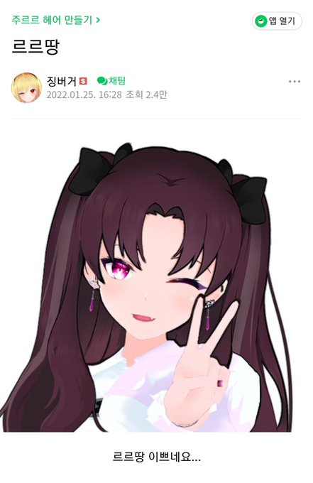 징부거땅이 르릇당 헤어공모전인가 했을때 대놓고 토오사카르르 그린게 넘웃겨서 아직도 찾아봄