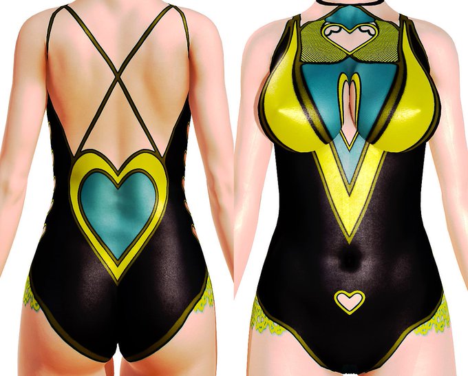 今更ハニカツで遊でて衣装によっては透過が反映されることに気づいて、自分のタトゥーMOD衣装化できるんじゃ…と試す。半脱ぎすると2枚目みたいに反映できなかったけど一応パンストと手袋でいけた。3、4枚目の水着はメッシュとマテリアルの扱いがわからず頓挫中。調べ物ほんと苦手