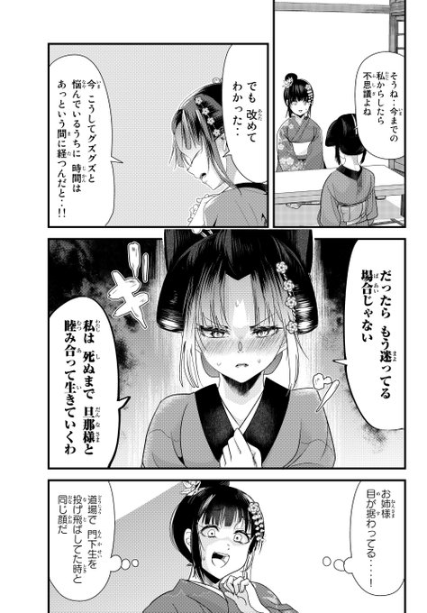 更新告知が遅れて申し訳ございません! 愛想笑いの嫁の長編18話更新しました!お千夜の妹、若世に縁談が!気になる旦那は何だか相性悪そう…11pあります! https://t.co/7OA7cGX25N