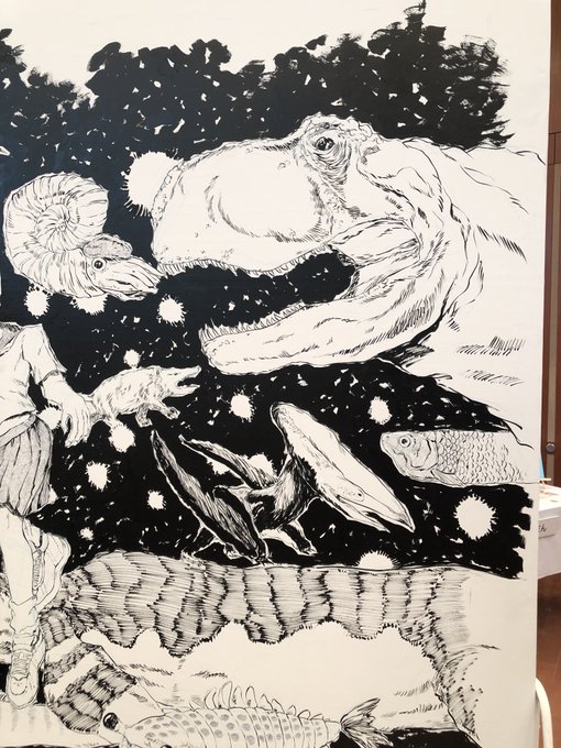 昔大阪でライブペイントで描いた作品 #筆ペン #イラスト #古代生物