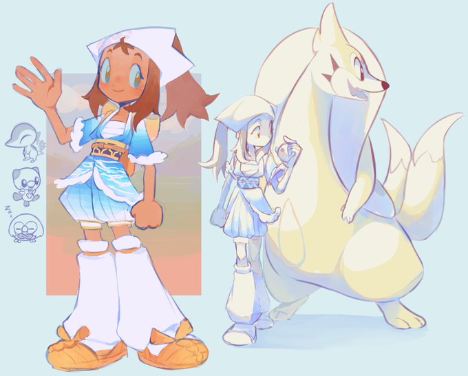 Found old sketches of my trainer from arceus and slipped colors onto them! Also my team :3