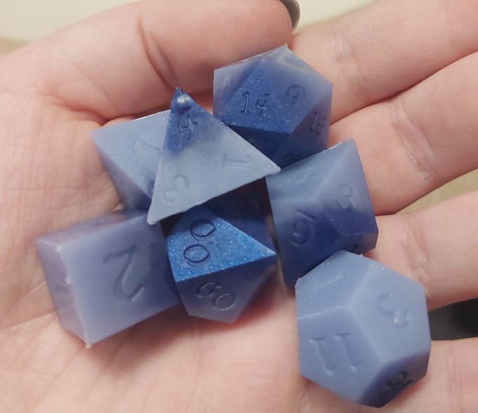 tried to make blueberry dice but accidentally made DAVE DICE INSTEAD (the dark purple on the dice are much much more purple in person)