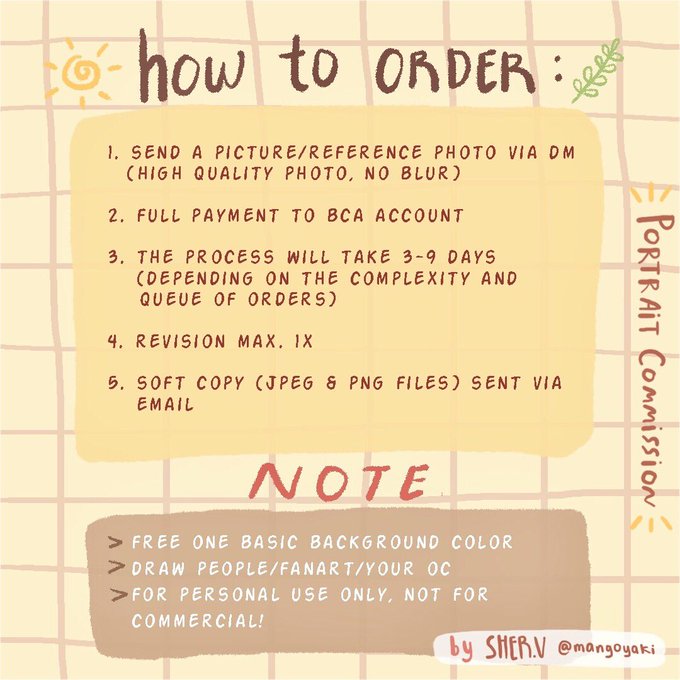Halo! Aku balik lagi buat buka commissions nih. Sekarang kalian bisa request buat nambahin full background juga lho.